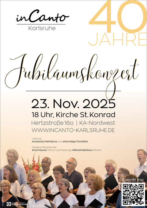 23. November, 18 Uhr Jubiläumskonzert zum 40. Geburtstag von inCanto, St. Konrad, Hertzstraße 16a, Karlsruhe
